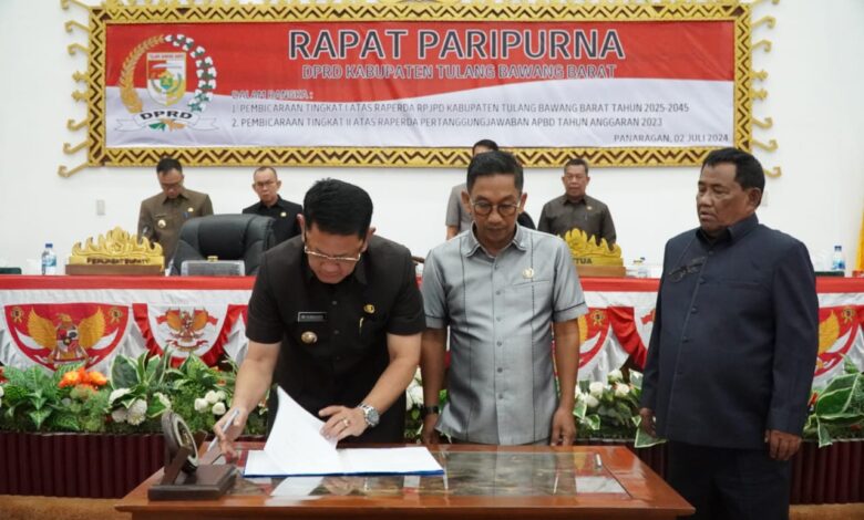 “Saya berharap agar Raperda RPJPD Kabupaten Tulang Bawang Barat Tahun 2025 – 2045 ini dapat dibahas untuk mendapat persetujuan bersama guna mewujudkan cita-cita pembangunan Kabupaten Tulang Bawang Barat 20 tahun ke depan yang lebih maju dan merata untuk kesejahteraan secara berkelanjutan” pungkasnya.