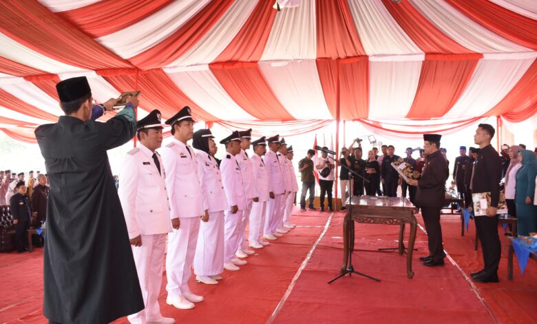 Penjabat Bupati Tulang Bawang Barat (Tubaba) Drs. M. Firsada, M.Si., melakukan Pelantikan kepada 9 Penjabat Kepala Tiyuh se- Kabupaten Tubaba. Di Lapangan Balai Tiyuh Mekar Asri, Kecamatan TBT, Rabu (04/09/2024).