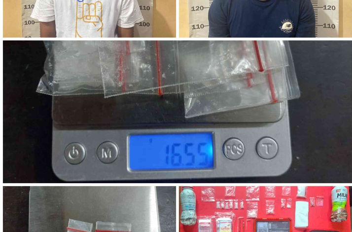 Saat dilakukan penggerebekan dari kedua tersangka anggota berhasil menyita barang bukti 1 (satu) bungkus plastik bening yang didalamnya terdapat 1 (satu) bungkus plastik klip berisi kristal-kristal putih diduga narkotika jenis shabu yang dilapisi 1 (satu) lembar tissu seberat, 2 (dua) bungkus plastik klip yang masing-masing didalamnya terdapat 1 (satu) bungkus plastik klip berisi kristal-kristal putih diduga narkotika jenis shabu, 1 (satu) bungkus plastik klip yang didalamnya terdapat 2 (dua) bungkus plastik klip berisi kristal-kristal putih diduga narkotika jenis shabu total seberat 16,55 Gram